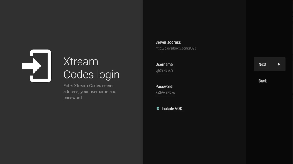 choose Xtream Codes login and enter Xtream connection details which IPTV provider must provided to you . Then choose next.